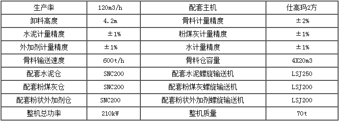該設備是(shì)集物料儲存、計量(liàng)、攪拌(bàn)於一體的(de)大型混(hún)凝土攪(jiǎo)拌設備,生產率為120m3/h,配套主機采用JS2000雙臥軸強製式攪拌機,混凝土卸料高度為4.2m,可攪拌各種類型(xíng)的混凝土,尤其適合攪拌幹硬性混凝土,適用中等規模以上的建築工程、水電、公路、港口、碼頭(tóu)、橋梁等工程建(jiàn)設及大中(zhōng)型預製(zhì)件廠和(hé)混凝土生產廠。